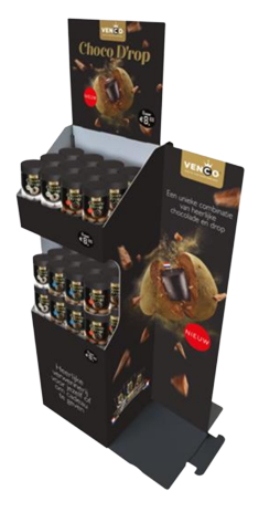 Onlangs heeft Venco een nieuwe variant gelanceerd, Venco Choco D’rop! Een unieke combinatie van heerlijke chocolade en drop. Om deze nieuwe varianten goed onder de aandacht te brengen onder uw klanten kunnen wij u voorzien van een display voor Venco D’rop.  Dit is een erg compacte display waar maar 36 verpakkingen ingaan, en hiervan krijgt u er ook nog eens 6 gratis!
